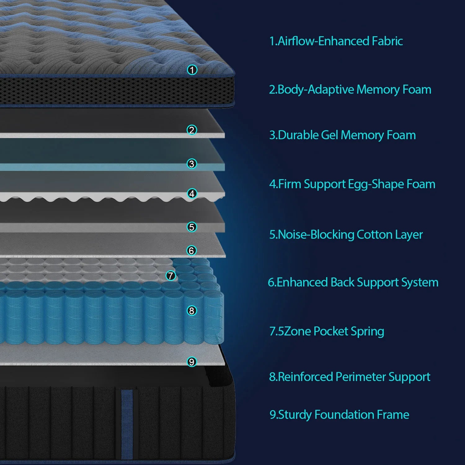 SweetloveCN Gel Memory Foam Hybrid Pocket Spring Mattress