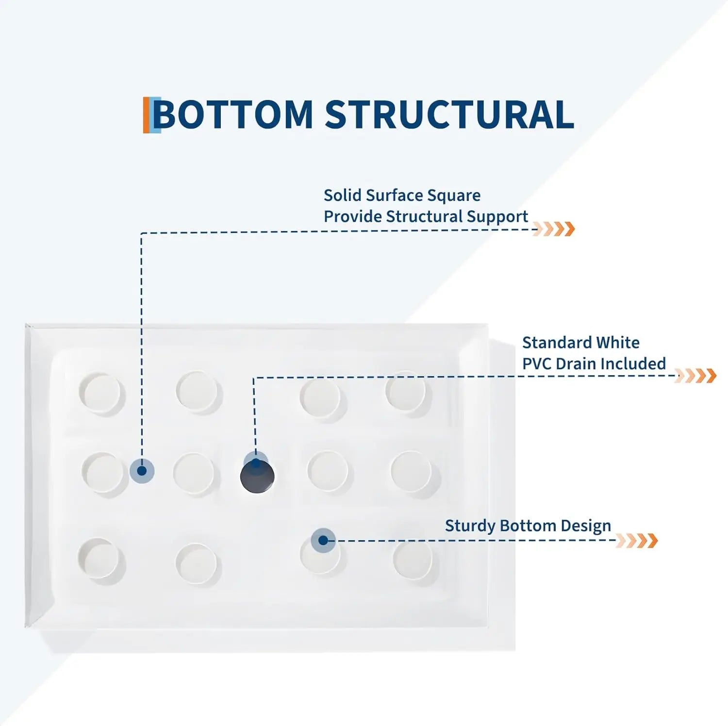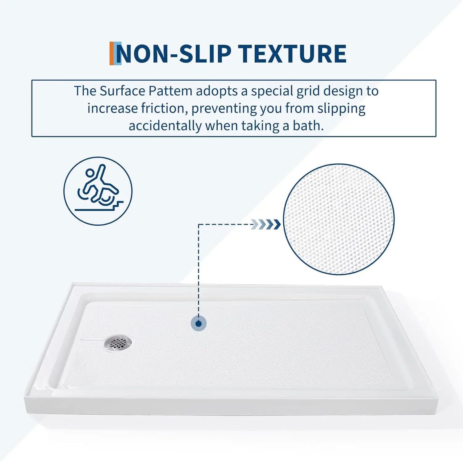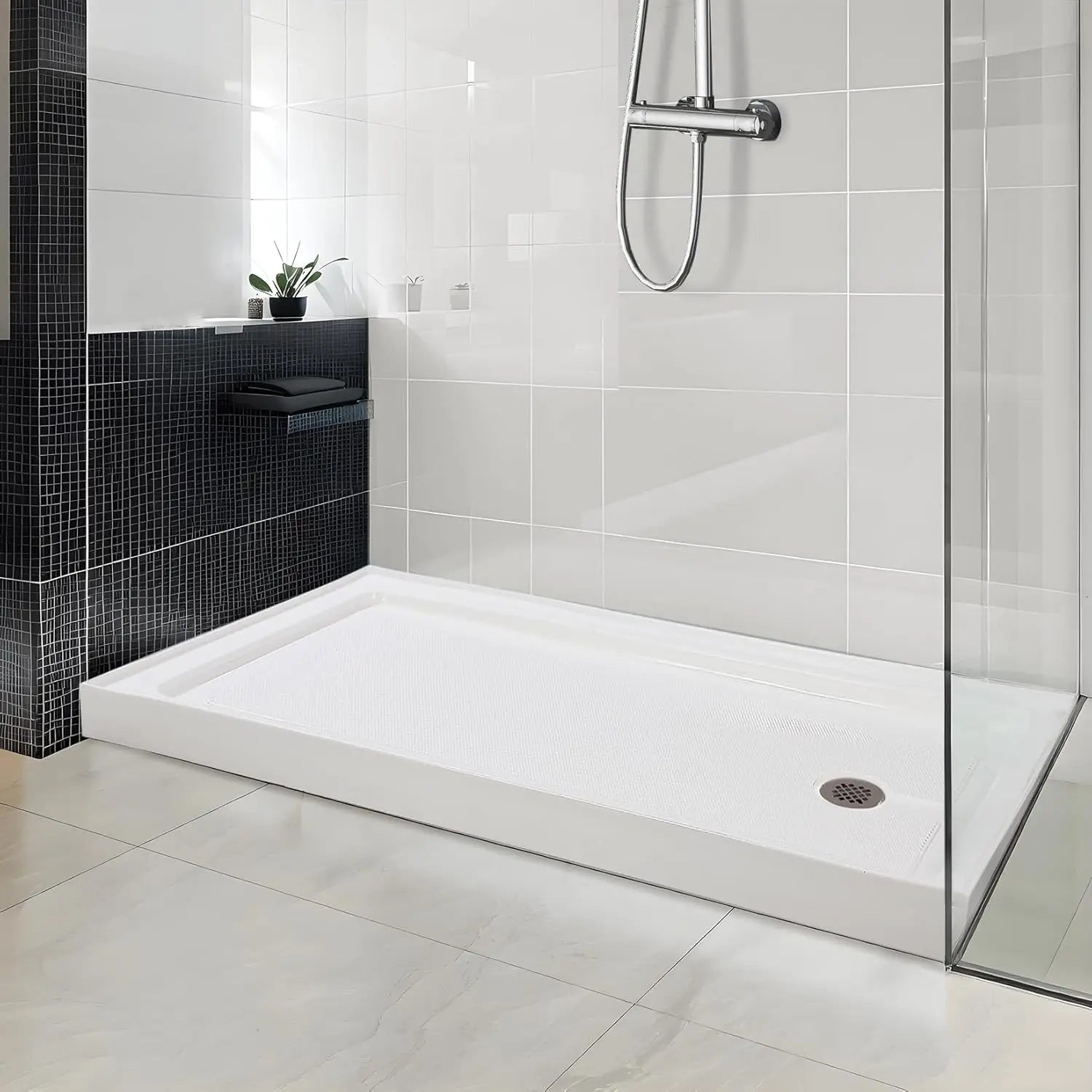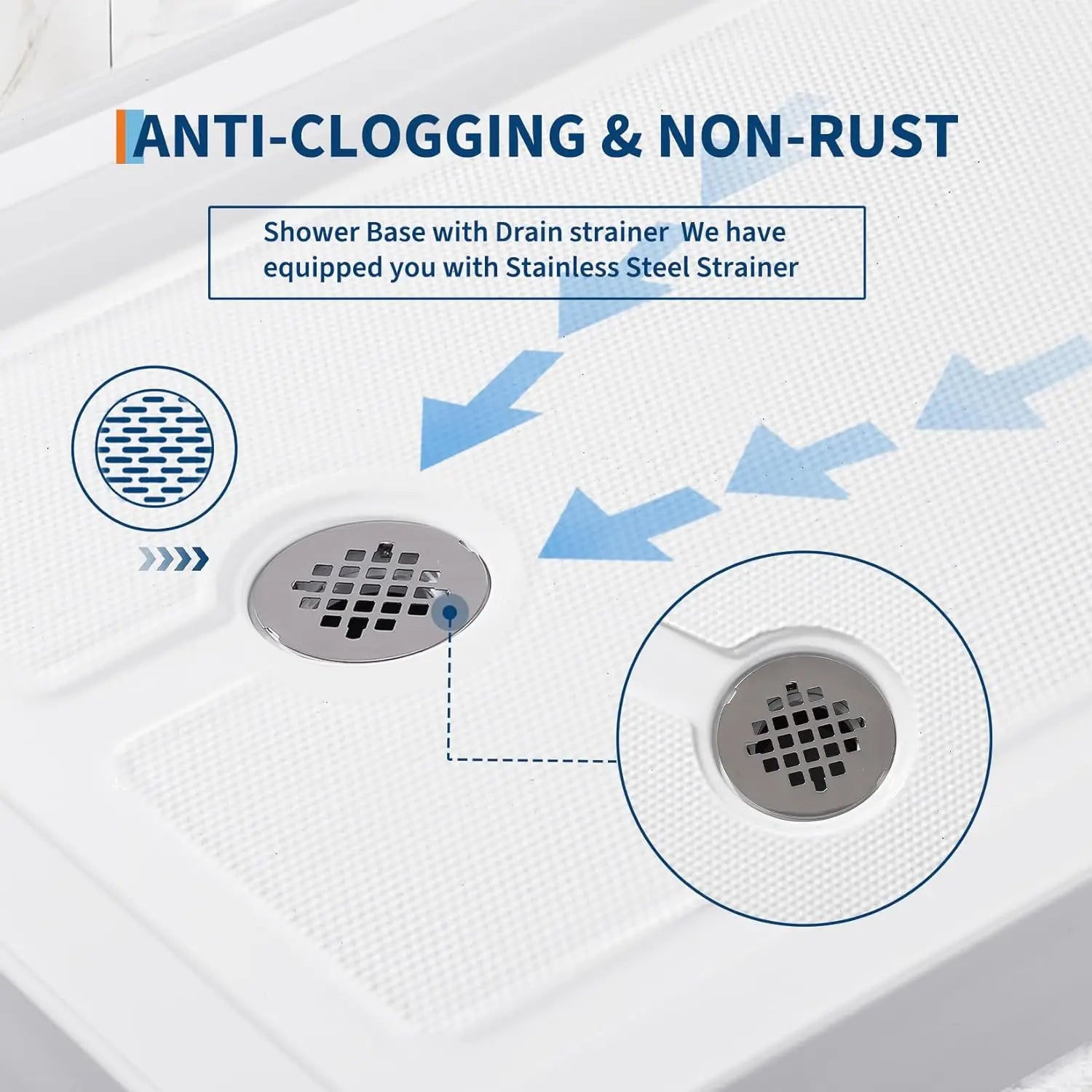 Transform your bathroom with this premium acrylic shower base engineered for durability and safety. Constructed from high-quality acrylic and reinforced resin, it resists cracks and stains while supporting up to 2,500 lbs. The slip-resistant textured surface reduces slips by 70%, making it ideal for families and seniors. Features a high-efficiency 304 stainless steel drain with precision mesh that captures hair and prevents clogs, plus an integrated 3-sided flange for optimal water containment. The intelligently inclined tray ensures rapid drainage, keeping your bathroom dry. Available in multiple sizes with a sleek glossy finish that complements any bathroom style.
