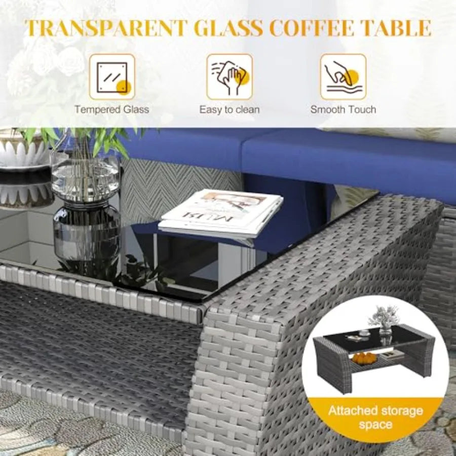 Transform your outdoor space into an inviting retreat with this stunning 4-piece sectional sofa set. Crafted from durable all-weather wicker rattan, this conversation set withstands the elements while maintaining its elegant appearance. The included cushions provide comfort for extended lounging, while the large glass table serves as the perfect centerpiece for drinks and décor. Ideal for patios, decks, and gardens, this versatile seating arrangement accommodates groups effortlessly. Create memorable gatherings with furniture designed for both style and lasting performance.