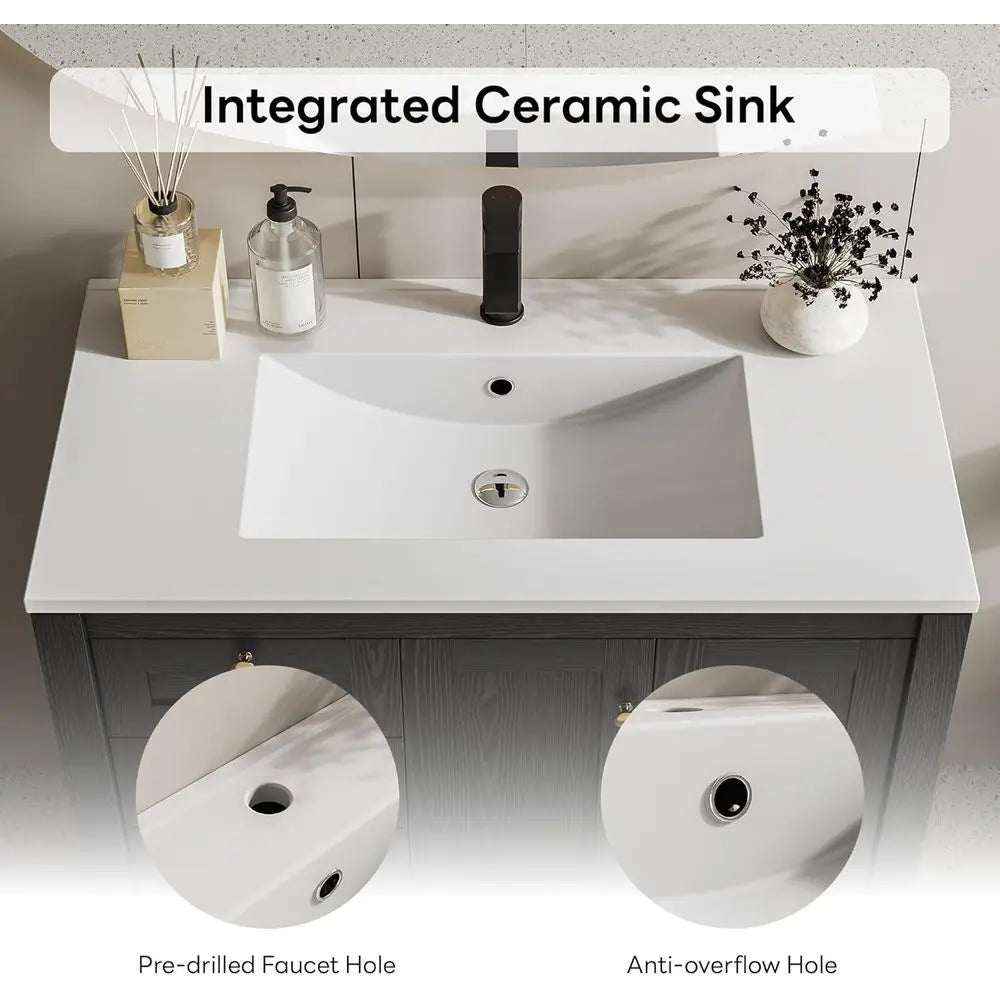 - Easy-clean ceramic sink: seamless integrated basin with 1.4-inch faucet hole and overflow (faucet and drain not included), so spills wipe away quickly and you spend less time cleaning.