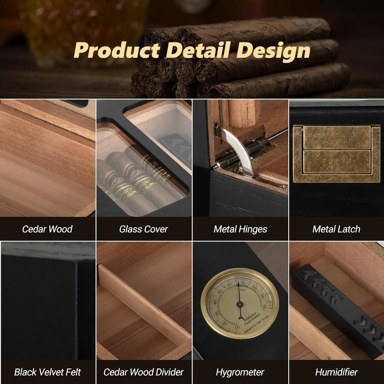 Upgrade your cigar storage with the UseWire Cedar Wood Cigar Humidor Glass Top—where premium craftsmanship meets everyday practicality, keeping your 20-35 cigars ready for any moment worth celebrating.
