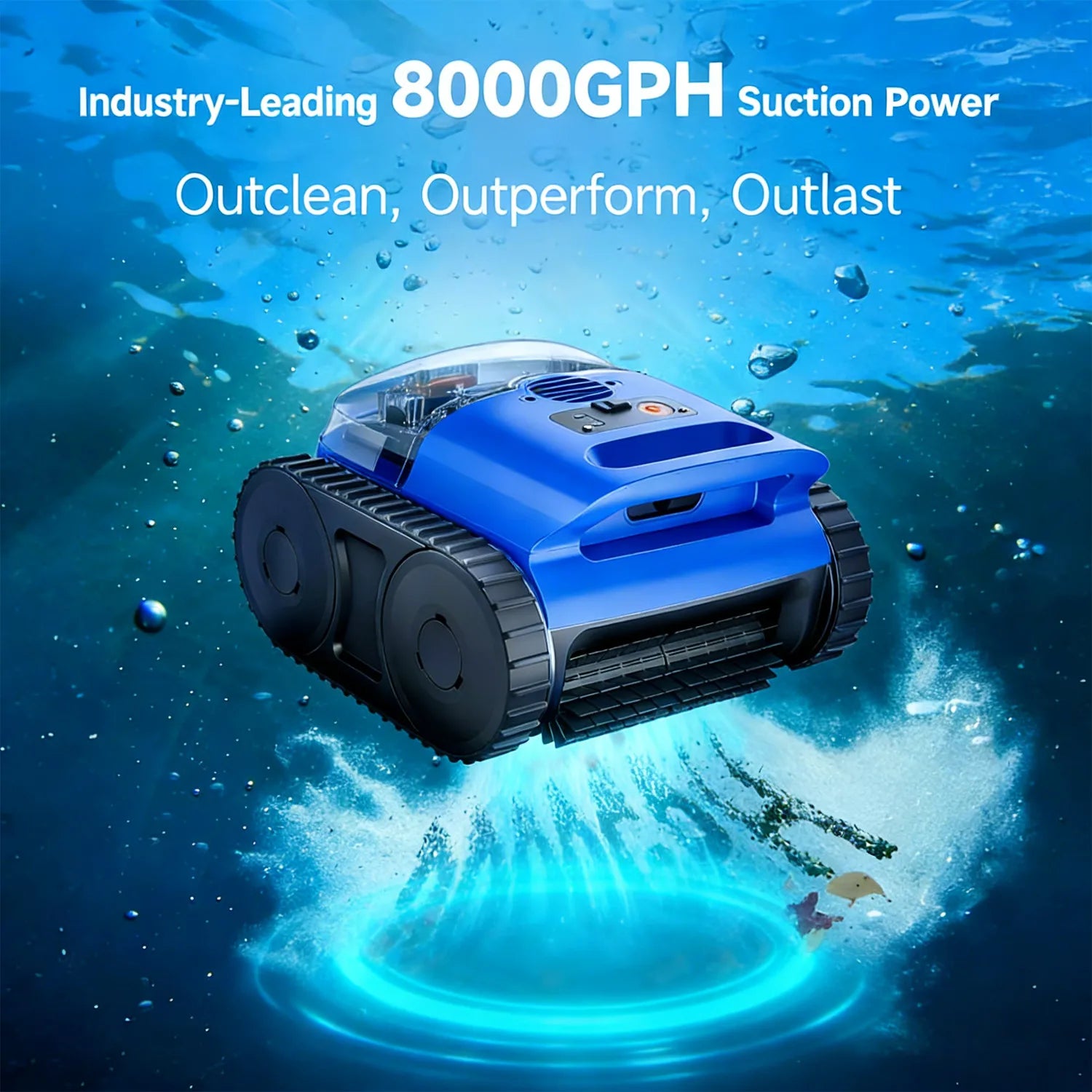 This Cordless Robotic Pool Cleaner is a high-performance, hands-free solution designed to take the manual labor out of pool maintenance. Powered by a robust 180W brushless motor, it offers superior suction and longevity compared to traditional brushed models, making it ideal for both inground and above-ground pools up to 2,150 sq. ft.