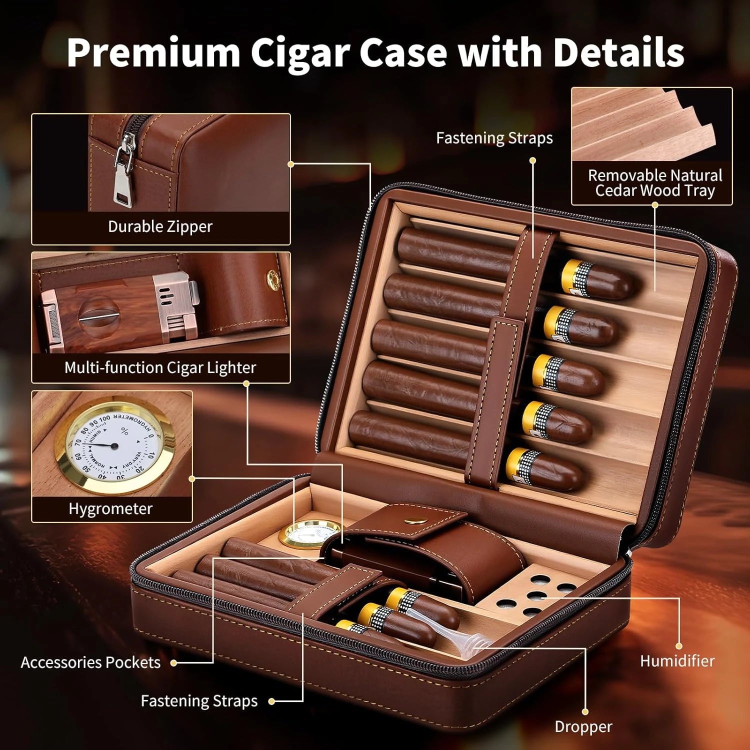 Portable 8 Cigar Travel Humidor Case With Humidity Control