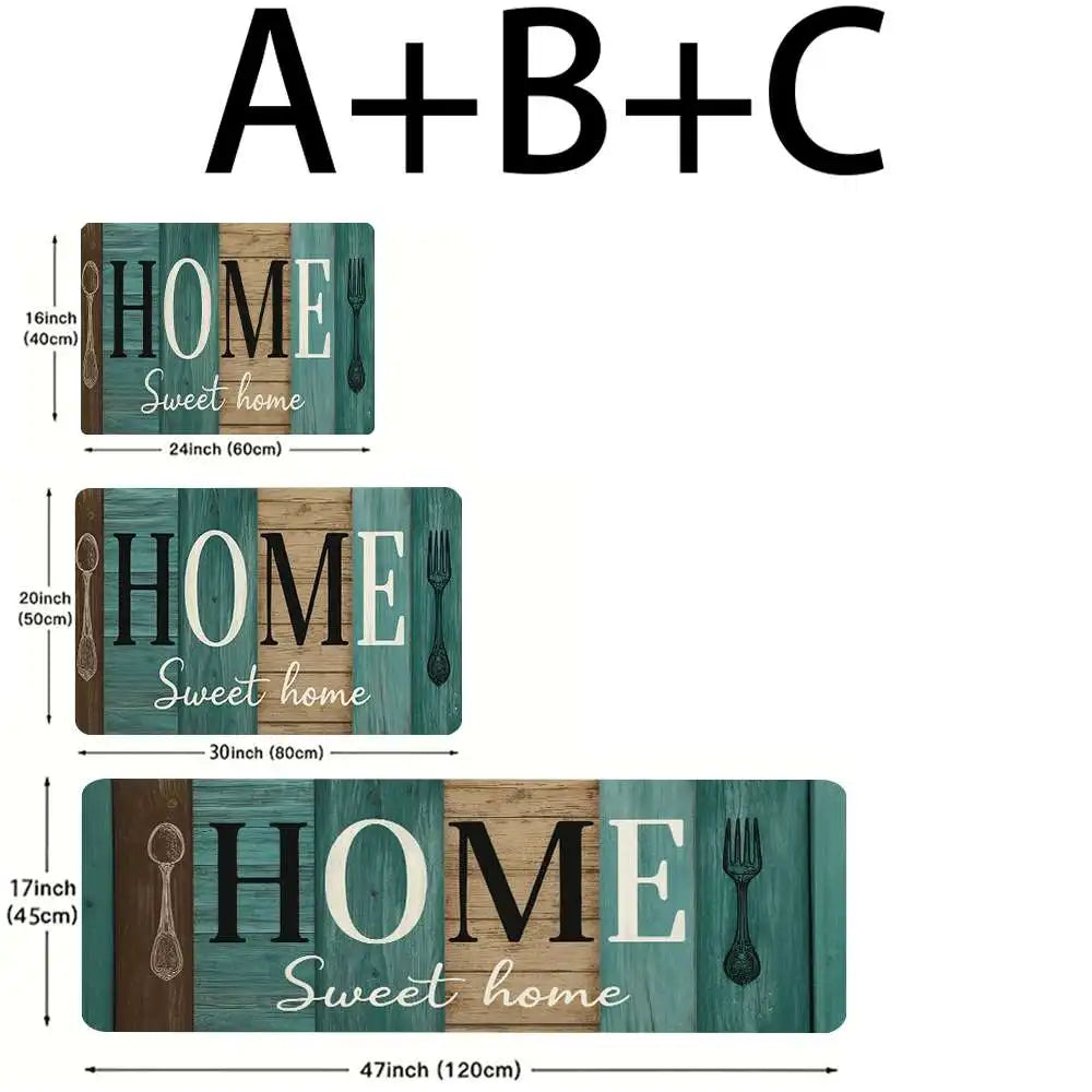 Vintage Wooden Home Sweet Home Kitchen Floor Mat Set
