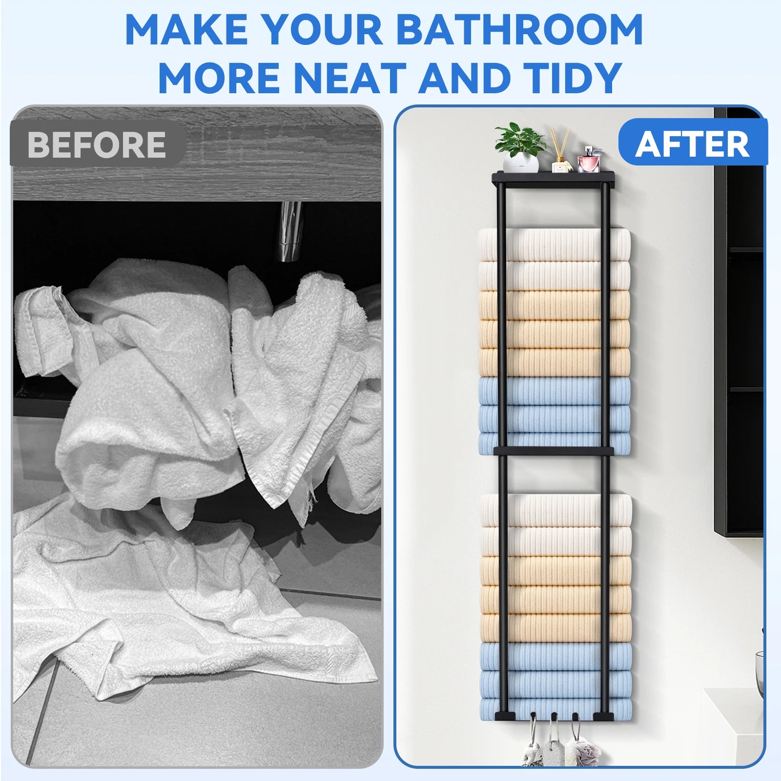 - Vertical design optimizes space by keeping towels rolled and accessible, reducing clutter on countertops and vanity surfaces.
