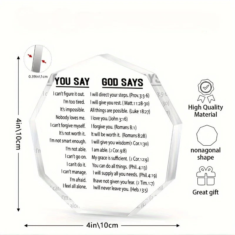 Brighten your space with the Acrylic Bible Verse Memento—a timeless reminder you can display at home or in the office, keeping faith visible in your daily routines.